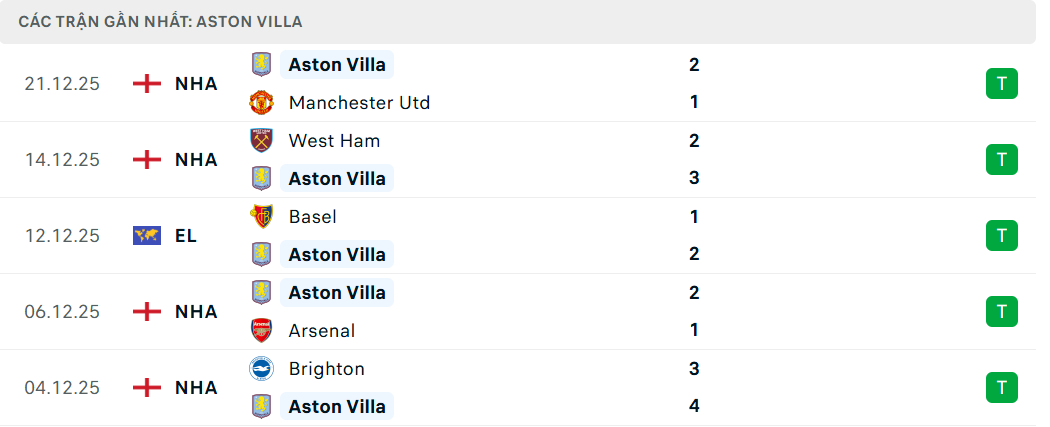 Trong khi đó, Aston Villa vẫn thi đấu nhịp nhàng và bay cao. Họ chưa có dấu hiệu dừng lại dù ở bất cứ sân chơi nào. Chiến thắng 2-1 trước MU vừa rồi kéo dài chuỗi 10 trận ca khải hoàn của đội. Chưa kể, toàn bộ 4 chuyến hành quân xa nhà tại châu lục lẫn quốc nội, đội khách đều có điểm số tối đa. Với sự thăng hoa trong lối chơi hiện tại, rõ ràng kịch bản trắng tay của Aston Villa khó xảy ra.