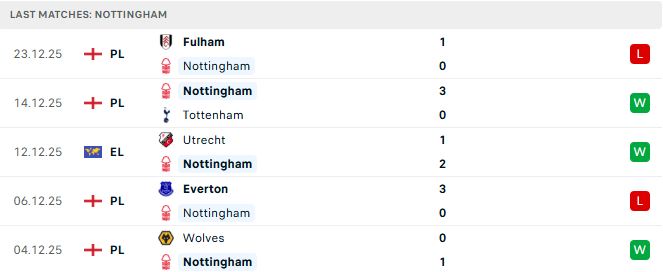 Trong 5 trận vừa qua, Nottingham có 3 chiến thắng nhưng cũng 2 lần thất bại. Tại Europa League, họ vượt qua đội bóng Hà Lan Utrecht ngay trên sân đối phương cùng 2 chiến thắng tại ngoại hạng Anh trước Tottenham và Wolves. Tuy nhiên, ở trận gần nhất, Nottingham nhận thất bại ngay trên sân nhà trước Fulham, một màn chạy đà không thật sự ấn tượng cho trận gặp Man City đêm nay.